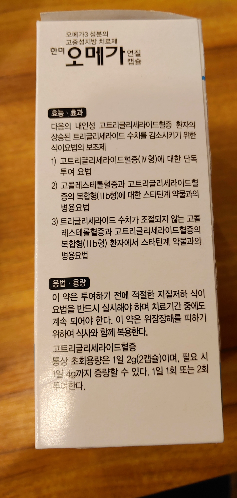 식약처 분류개개의 기관계용 의약품 > 순환계용약 > 동맥경화용제구분전문 의약품제조(수입) 업체명한미약품제조·수입 구분제조보험코드643507130판매처판매 약국 찾기제형연질캡슐모양타원형색깔노랑, 투명식별표기OMEGA