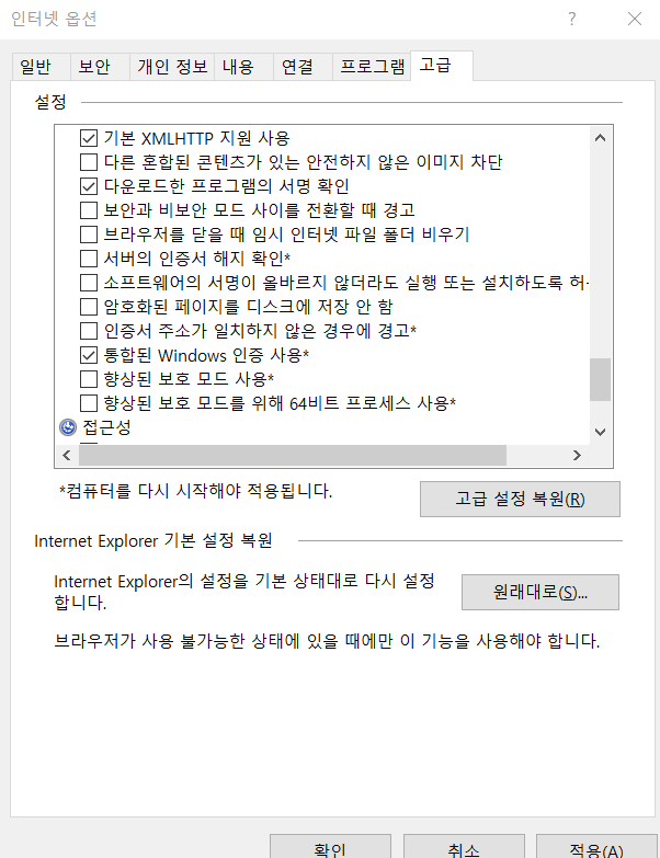 2. 인터넷옵션 > 고급