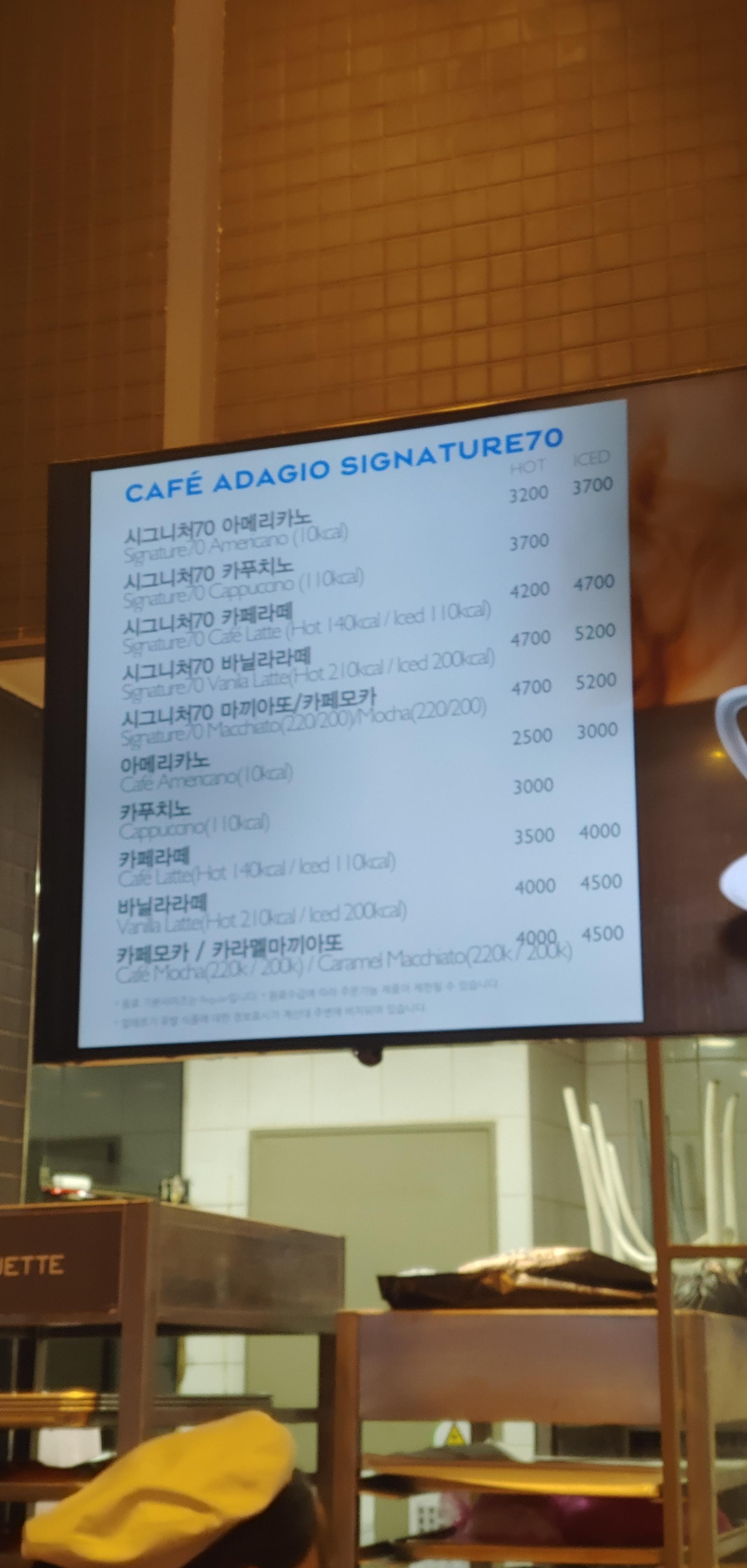 시그니처 70 따뜻한 라떼 3,700 입니다.