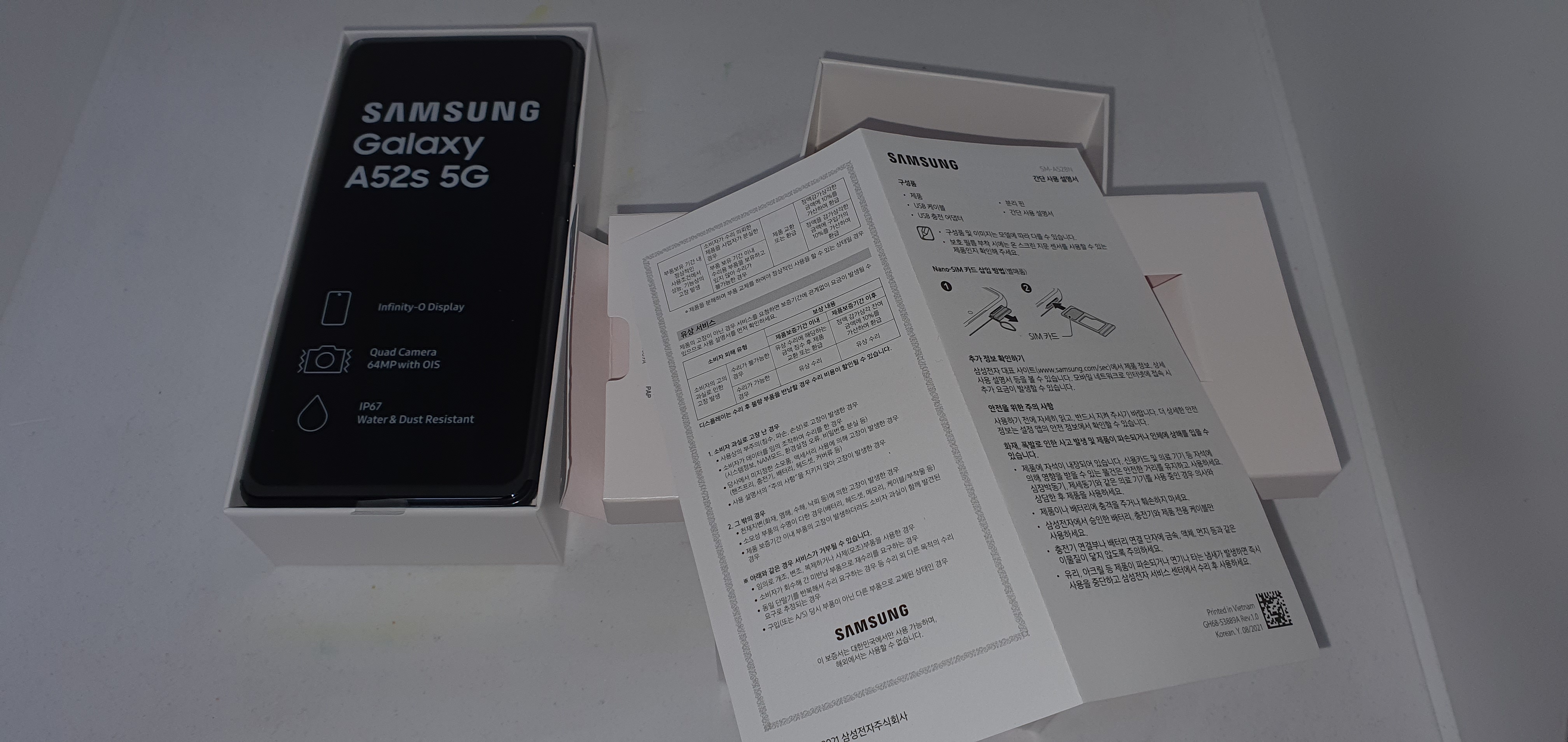 최근 각 통신사별 (기존 KT -> 현재 SKT) 재고를 털어내고 있는 것으로 보이는 삼성 Galaxy A52s 5G (SM-A528) 제품을 실사로 구매했습니다.